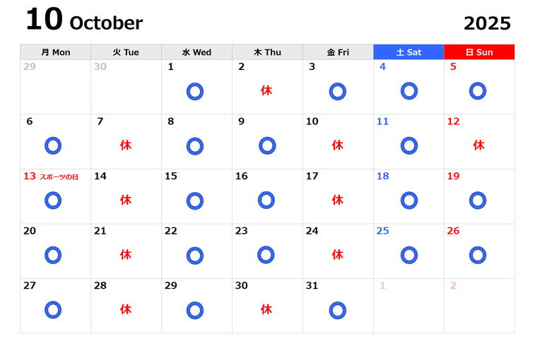 営業時間が通常と異なる日に関してはカレンダー記載時間での営業となります。 翌月のスケジュールは毎月20日に掲載いたします。